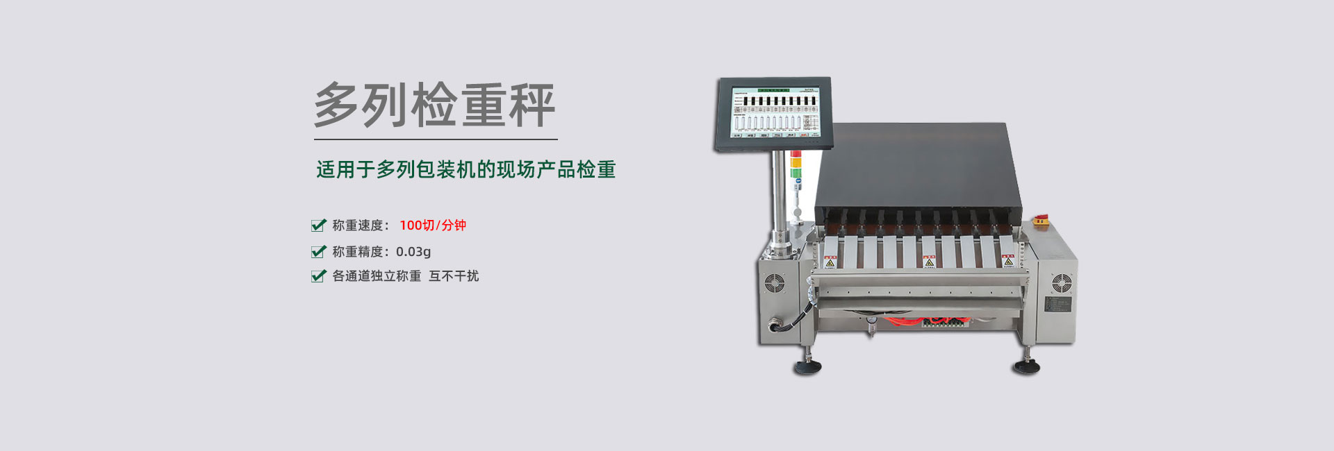擁有各種剔除方案的專利,包括多列稱重結(jié)構(gòu)的剔除裝置,可杜絕不合格品誤通過,準(zhǔn)確剔除各種高速、超薄、片狀、易碎,軟包、空包等物品,包括多列高速產(chǎn)品。